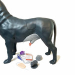 The extendable penis with an inflatable bulbus and controllable ejaculation function enables realistic training of manual semen collection - complemented by a lifelike prepuce design. The flexible material provides an authentic feel with every movement.