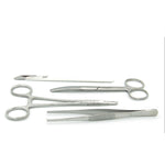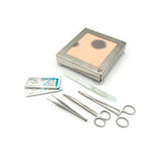 The suturing instrument set includes all essential tools for precise and effective suture practice: scalpel handle, tweezers, needle holder, and surgical scissors – ideal for long-term use in courses, studies, or self-training.